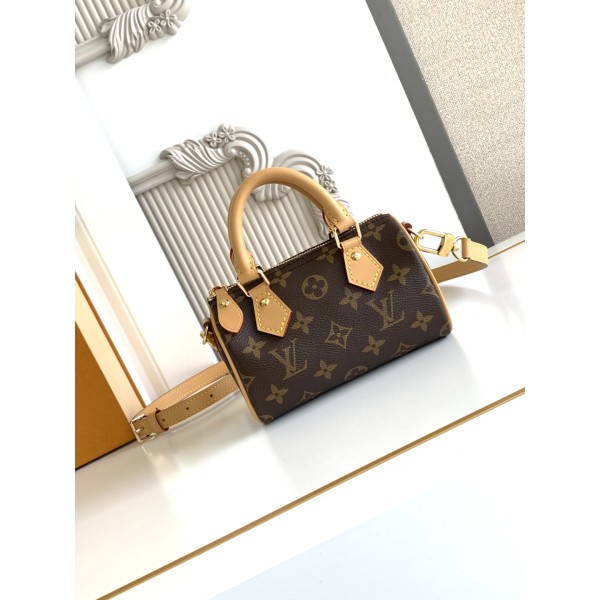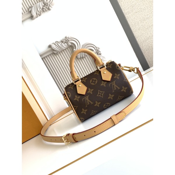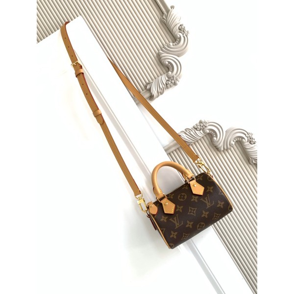Speedy Monogram 클러치백 / M81085 Nano Speedy 소가죽 디테일 핸들과 탈부착 및 조절이 가능한 어깨끈 사이즈 : 16 X 10 X 7.5 cm (길이 x 높이 x 너비) ㅡ #가방