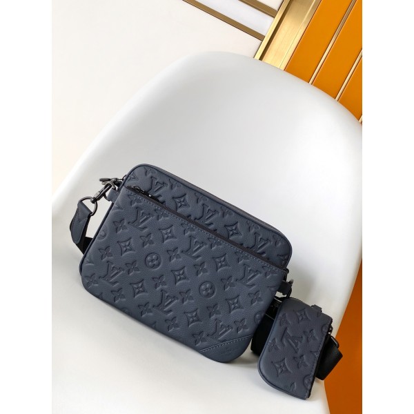 Grey Trio 트리오 메신저 백 모노그램 엠보 소가죽 / M14785 탈부착 및 조절이 가능한 자카드 어깨끈 숄더와 크로스백 연출 사이즈 : 25×18.5×7cm ㅡ #가방
