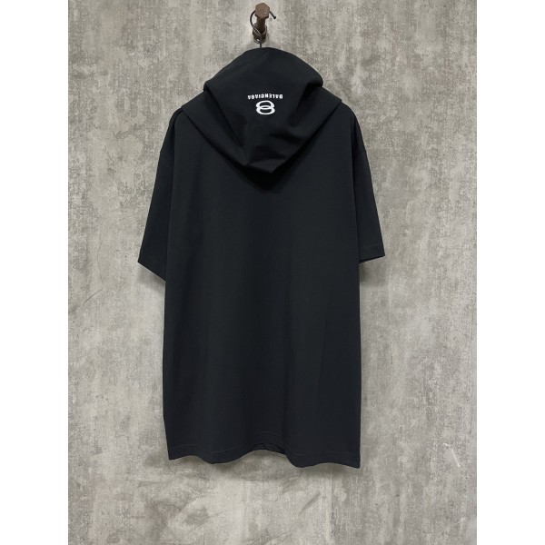 페이크 후드 자수 반팔티 남녀공용 / 블랙 사이즈 : 1-2-3 ㅡ #의류