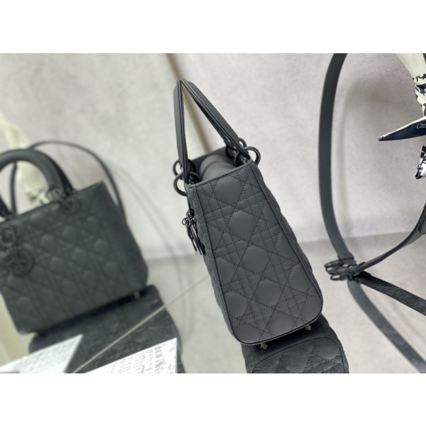 무광 블랙 클래식 까나쥬 무광 송아지 가죽 플랩 D-Lady 토트백 크로스백 모델 번호: 6605 사이즈: 24cm ㅡ #가방