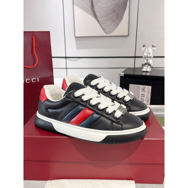 Ace 커플 운동화 / 남녀공용 커플 아이템 두꺼운 구조감과 시그니처 디테일 소재: 천연 소가죽 (겉), 양가죽 (안감) 굽 높이: 약 3.5cm 밑창: 정품 사양 TPU 발포 내마모 밑창 사이즈: 35-45 ㅡ #신발