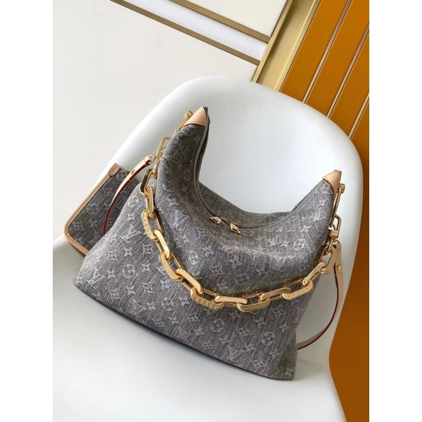M13390 쿠상 호보 MM 핸드백 Coussin Hobo MM Monogram Denim 유기농 면 소재, 검정·흰색 실로 짜여 빈티지한 워싱 처리 크로스, 숄더, 핸드 모두 착용 가능 스트랩: 탈부착 가능, 길이 조절 가능 스트랩 길이: 30cm (최대 50cm) 체인: 탈부착 가능 체인 길이: 30cm (최대 50cm) 사이즈: 38 x 33 x 10cm (가로x세로x폭) ㅡ #가방