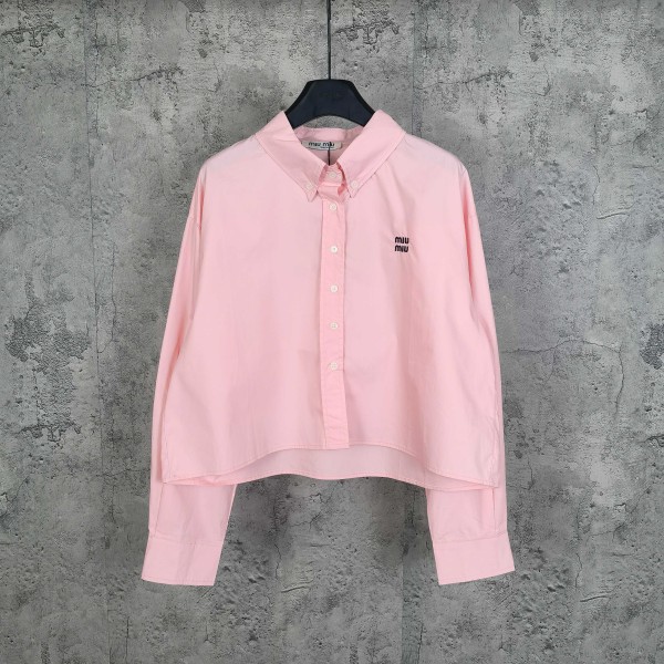 MiuMiu 미우미우 여성용 로고 자수 포플린 숏 셔츠 의류 요약정보 및 구매