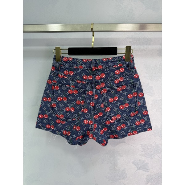 Louis Vuitton LV 루이비통 체리 로고 올오버 프린트 데님 쇼츠 반바지 의류 > 여성 BOTTOM