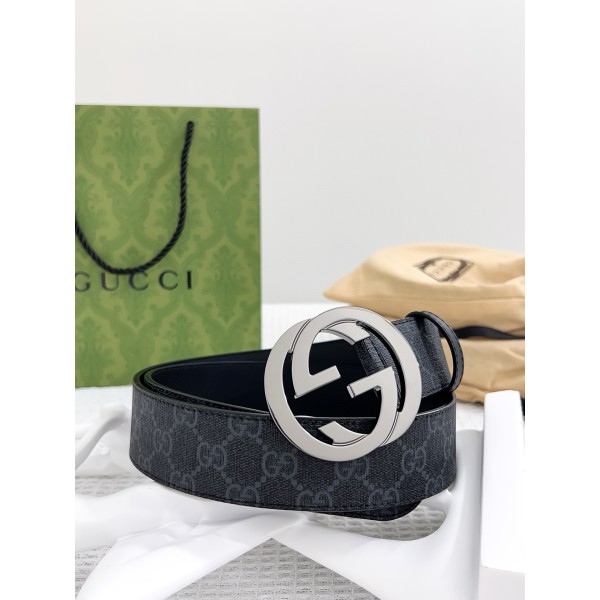 GUCCI 구찌 남성용 PVC + 가죽 GG 로고 벨트 > 남성벨트