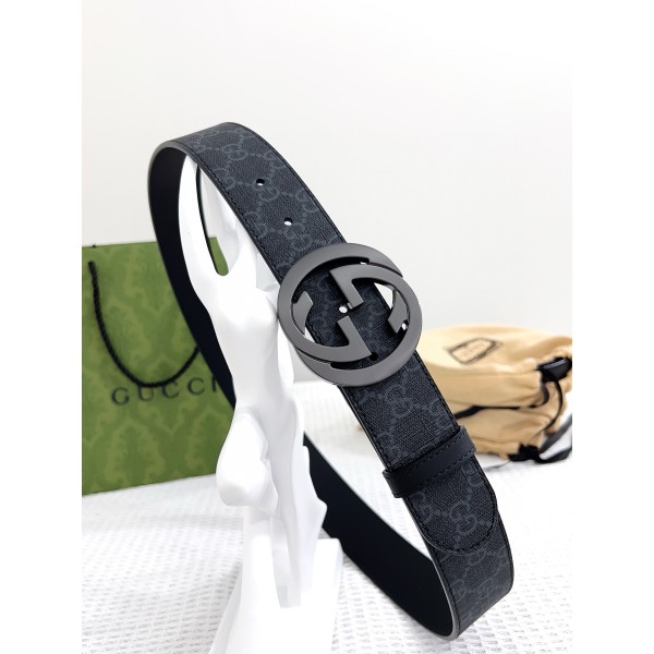• GUCCI 구찌 남성용 PVC + 가죽 GG 로고 벨트