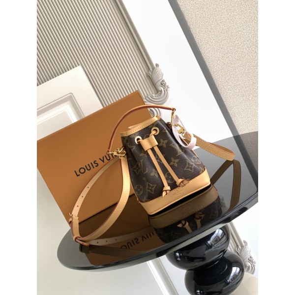 M81266 / Nano Noé 나노 노에 버킷백 이탈리아산 A급 Monogram 캔버스 천연 소가죽 트리밍 수입 A급 풀스틸 하드웨어 탈부착 가능한 손잡이와 조절 가능한 숄더 스트랩 토트, 숄더, 크로스백 등 다양한 스타일로 연출 가능 사이즈: 13.0 x 16.0 x 10.0 cm (가로 x 세로 x 폭) ㅡ #가방