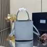 PRADA Saffiano Mini Bucket Bag 소재 : 시그니처 사피아노 가죽 / 가죽 핸들 탈부착 및 길이 조절 가능한 가죽 스트랩 금속 로고 장식의 탈부착 가능한 가죽 네임 태그 마그네틱 클로저 & 중앙 오픈 포켓 사이즈: 18 × 17 × 10.5cm ㅡ #가방
