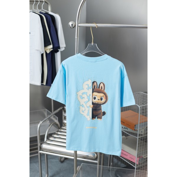 프리미엄 캐주얼 라부부 한정판 프린트 반팔 티셔츠 프린팅: 디지털 직사 인쇄 + 고온 압착 호주산 큐빅 디테일 가공: 완제품 염색 후 스노우 워싱 가공 및 워시드 빈티지 처리 마감: 이중 박음질 / 내구성 높은 봉제 사이즈: S / M / L / XL ㅡ #의류
