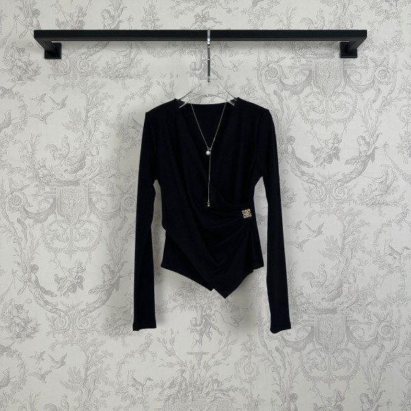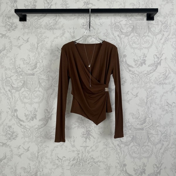 Loewe 로에베 비대칭 셔링 디테일 V넥 니트 탑 상의 의류 > 여성 TEE& TOP