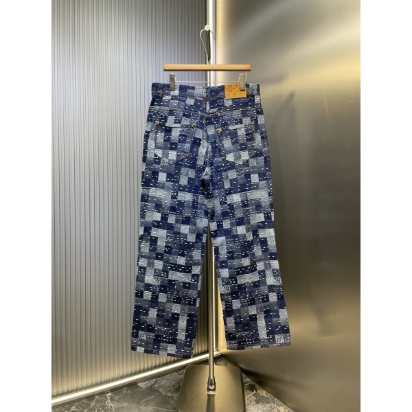 LV 루이비통 Louis Vuitton 데님 체크 자수 팬츠 바지 의류 > 남성 PANTS