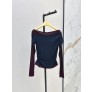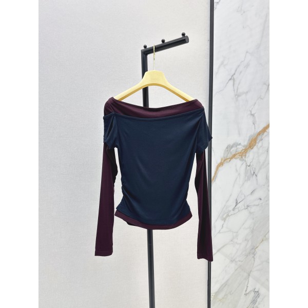 MIUMIU 미우미우 오프숄더 배색 로고 슬림핏 긴팔 티셔츠 의류 요약정보 및 구매