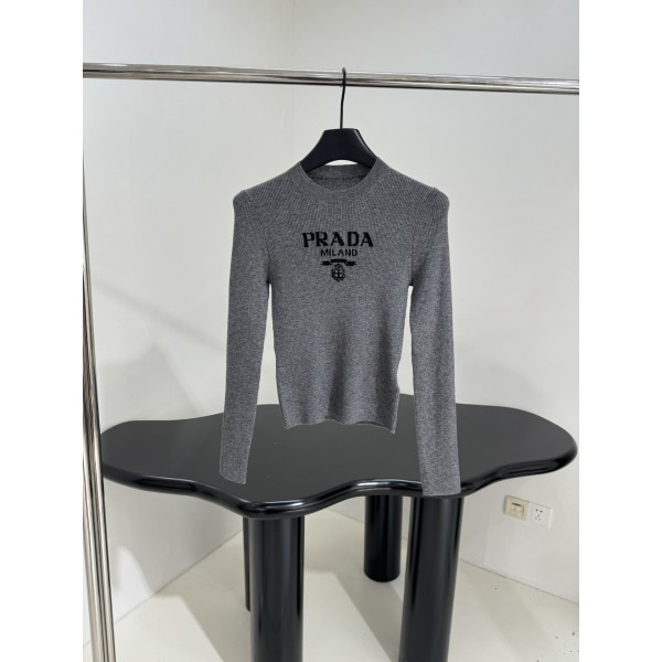 Prada 프라다 로고 실크 라운드넥 긴팔 니트 의류 > 여성 TEE& TOP
