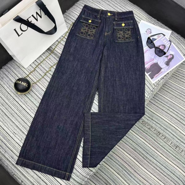 Loewe 로에베 로고 자수 포켓 데님 스트레이트 팬츠 청바지 의류 > 여성 BOTTOM