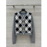 하이엔드 오리지널 퀄리티 / 크롭 기장 배색 퀼팅 로고 니트 가디건 100% 울 원사 → 부드럽고 포근한 촉감 배색 다이아 패턴 + 로고 디테일, 걸리시 & 트렌디 무드 사이즈: S / M / L (M=가슴42·어깨36·총장45) ㅡ #의류