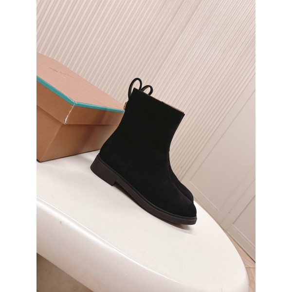 고급 양가죽·소가죽 소재 사이드 지퍼 디자인 뒷부분 로고 금속 디테일 포인트 심플하면서도 고급스러운 데일리 부츠 겉감: 소가죽 / 양가죽 스웨이드 안감: A급 소가죽 + 전용 레드 내피 밑창: 원본 제작 고무 밑창 사이즈: 35-41 ㅡ #신발