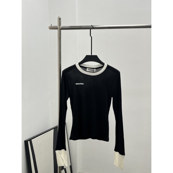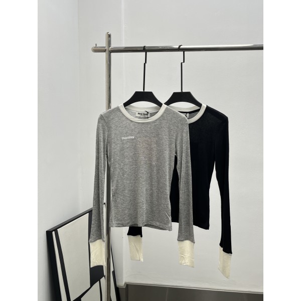 MiuMiu 미우미우 레이어드 느낌 로고 장식 롱슬리브 티셔츠 의류 > 여성 TEE& TOP