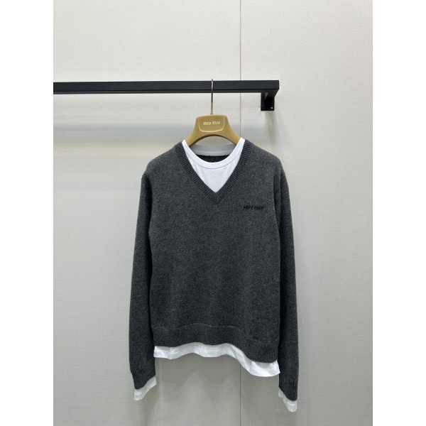 MiuMiu 미우미우 그레이 V넥 레이어드 니트 의류 > 여성 TEE& TOP