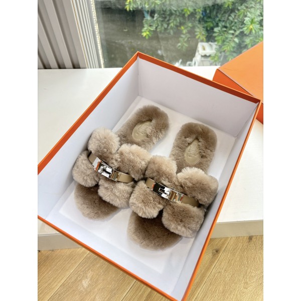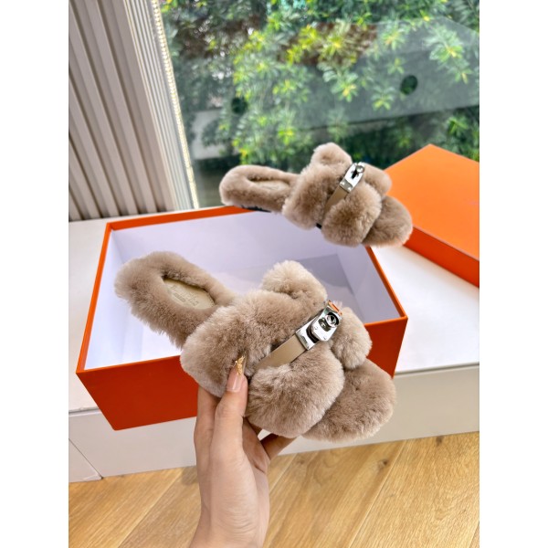 에르메스(Hermes) 양털 퍼 슬리퍼 신발 > 샌들/슬리퍼