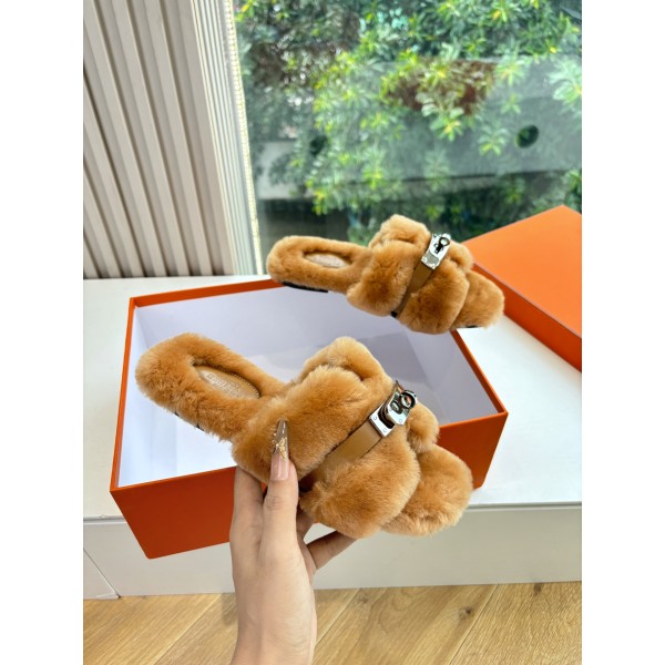 에르메스(Hermes) 양털 퍼 슬리퍼 신발 > 샌들/슬리퍼