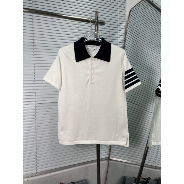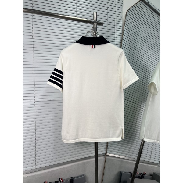 Thom Browne 톰브라운 배색 카라 사선 네 줄 니트 반팔 의류 요약정보 및 구매