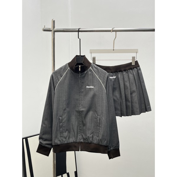 MiuMiu 미우미우 스트라이프 집업 상의 & 하프 스커트 세트 의류 > 여성 아우터