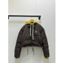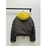 충전량: 140g, 가볍고 따뜻함 컬러 포인트: 다크 브라운 바디 + 옐로우 후드 배색 디자인: 탈부착 가능한 후드 / 카라+버튼 디테일 / 밑단 스트링 조절 스타일: 레트로 무드 + 실용성 / 포켓 로고 포인트 사이즈: S / M / L ㅡ #의류