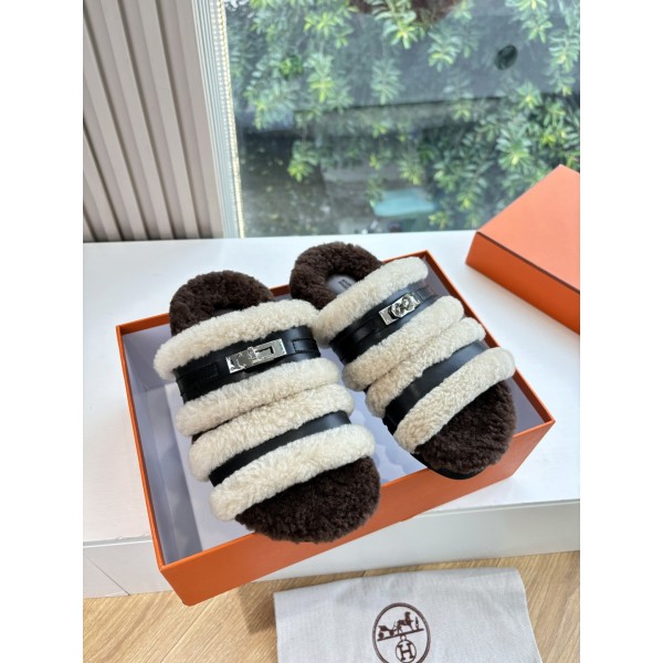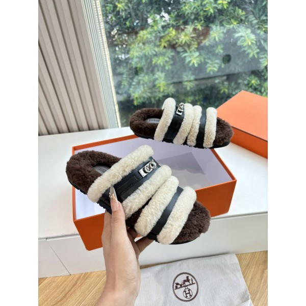 HERMES 에르메스 양털 퍼 슬리퍼 신발 > 샌들/슬리퍼