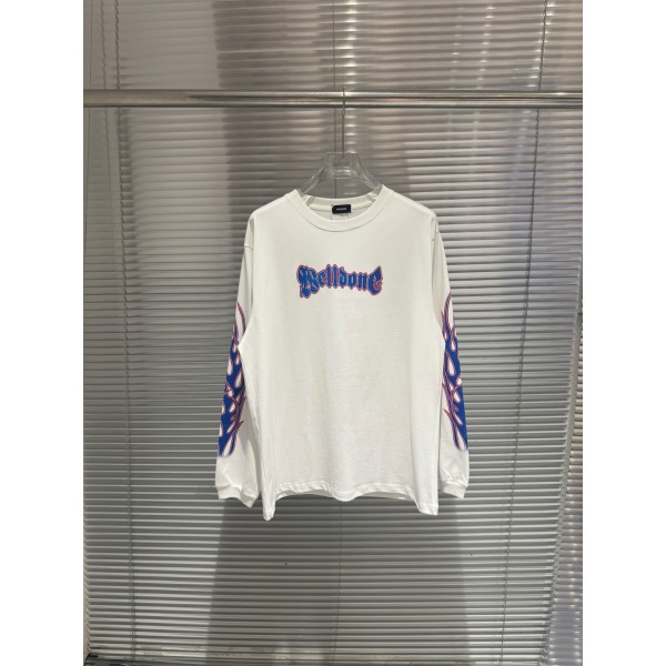 WE11DONE 웰던 블루 플레임 로고 프린트 롱슬리브 긴팔 티셔츠 의류 요약정보 및 구매