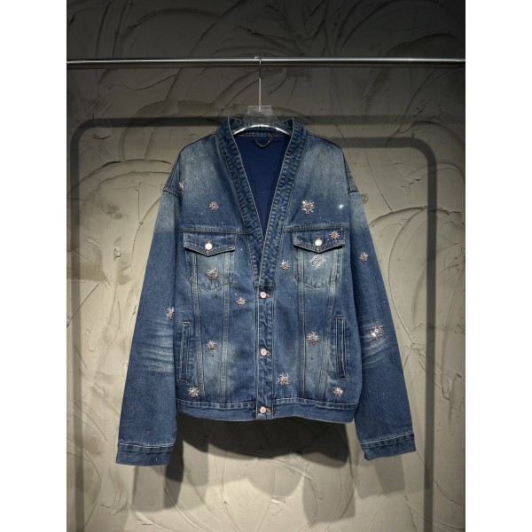 소재: 프리미엄 데님 디테일: 전면 수공 벚꽃 크리스탈 장식, 정교한 핸드 스티치, 쇼 컬렉션 동일 스타일 특징: 한정판 하이엔드 퀄리티, 소장 가치 높은 아이템 착용: 남녀 공용, 매칭용 7부 팬츠 세트 출시 핏: 클래식 V넥 데님 자켓 실루엣 사이즈: 46 / 48 / 50 / 52 (남녀 공용) ㅡ #의류