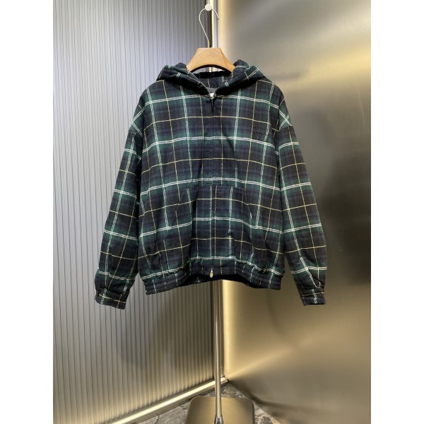 miumiu 미우미우 체크 자수 후드 집업 자켓 재킷 의류 > 남성 아우터