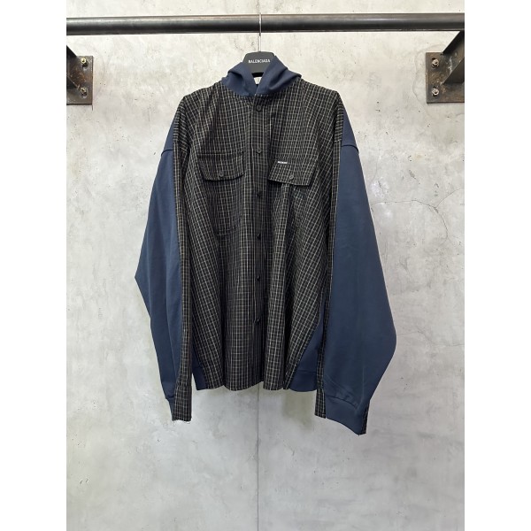 Balenciaga 발렌시아가 체크 패턴 가슴 포켓 후드 아치 헴 셔츠 자켓 재킷 의류 요약정보 및 구매