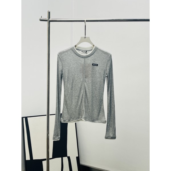 miumiu 미우미우 로고 자수 배색 롱슬리브 긴팔 티셔츠 의류 요약정보 및 구매