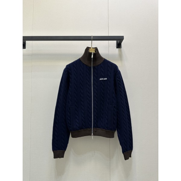 MiuMiu 미우미우 브라운 배색 하이넥 니트 가디건 자켓 의류 요약정보 및 구매