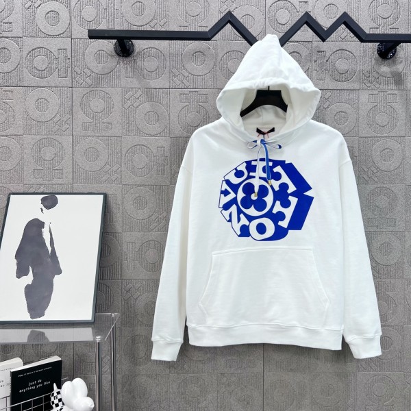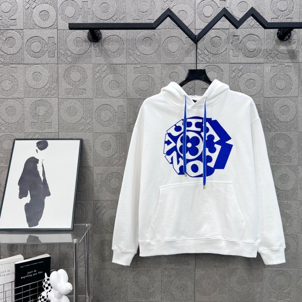 사이즈 : S–XL / 블랙, 화이트 450g 고중량 순면 루프 원단, 부드럽고 탄탄한 착용감 블랙·블루 스트링 + LV 로고 벨벳 프린트 선명한 컬러, 세탁 후에도 변형 없음 심플하면서도 세련된 남녀공용 럭셔리 후드티 ㅡ #의류