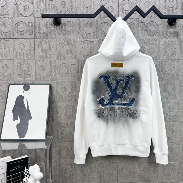 사이즈 : S–XL / 블랙, 화이트 440g 고중량 순면 루프 원단, 미국식 워싱 & 레이저 번아웃 가공 LV 시그니처 데님 패치 + 정교한 자수 디테일 터키산 면 사용, 부드럽고 견고한 착용감 원판 동일 라벨·부자재·포장 완비 남녀공용, 빈티지 감성과 고급스러움의 정점 ㅡ #의류