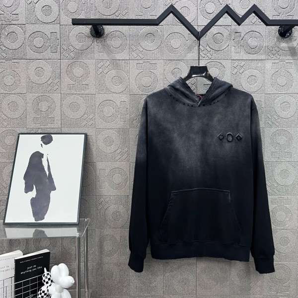 사이즈 : S–XL / 블랙, 화이트 440g 고중량 순면 루프 원단, 미국식 워싱 & 레이저 번아웃 + 패치 자수 LV 시그니처 정교한 글자 자수 디테일 터키산 면, 부드럽고 편안한 착용감 원판 동일 라벨·부자재·포장 완비 남녀공용, 고급스러운 빈티지 스타일, 시각적 존재감 뛰어남 ㅡ #의류