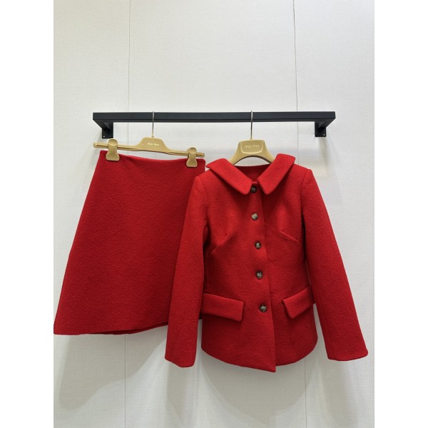 miumiu 미우미우 클래식 레드 울 자켓 + 스커트 세트 의류 > 여성 아우터
