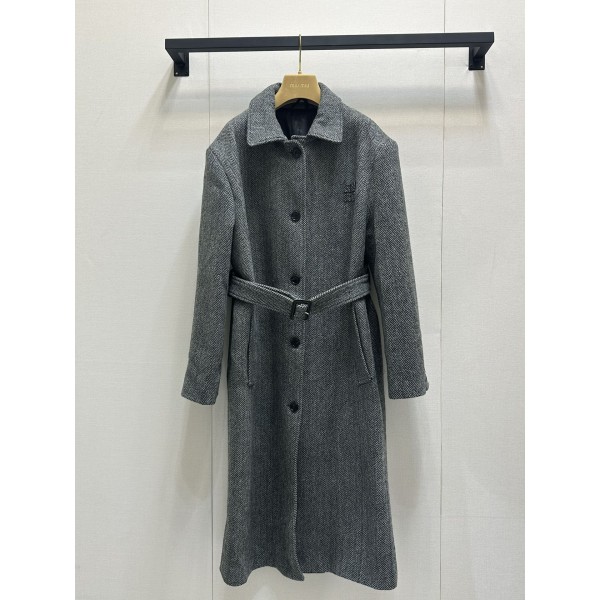 miumiu 미우미우 플랫카라 싱글버튼 + 벨트 롱 니트 코트 의류 > 여성 아우터