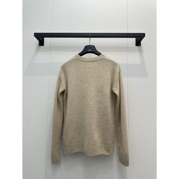 Monogram 자수 양모 니트 스웨터 원단: 100% 고급 산양 울, 색상: 밀크 브라운 + 골드 자수 부드럽고 포근한 착용감, 라운드넥 디자인, 소매·밑단 리브 처리 자수 로고 디테일로 럭셔리 포인트, 데일리·출근·데이트 모두 활용 가능 사이즈: S / M / L ㅡ #의류