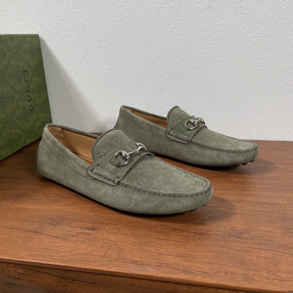 송아지 가죽·스웨이드 소재, 더블 G 엠보싱 로고 실버 메탈 홀스빗 장식, 러버 도트 아웃솔 부드럽고 통기성 좋은 착화감, 캐주얼·포멀 모두 활용 가능 품번: 459801 사이즈 38–46 ㅡ #신발
