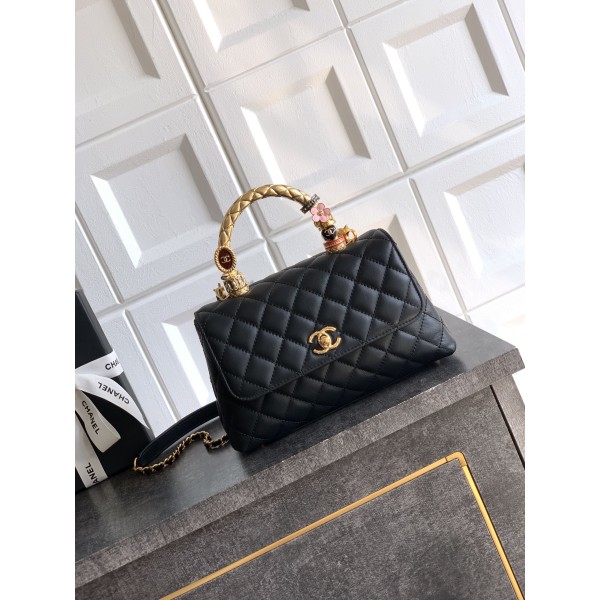소재: 송아지 가죽 색상: 실버골드 디자인: 클래식 Coco Handle 시리즈, 순동 다이아 장식 손잡이, 빈티지 감성 특징: 빈티지 럭셔리 무드, 부드럽고 내구성 높은 가죽, 고급스러운 광택감 사이즈: 23cm ㅡ #가방