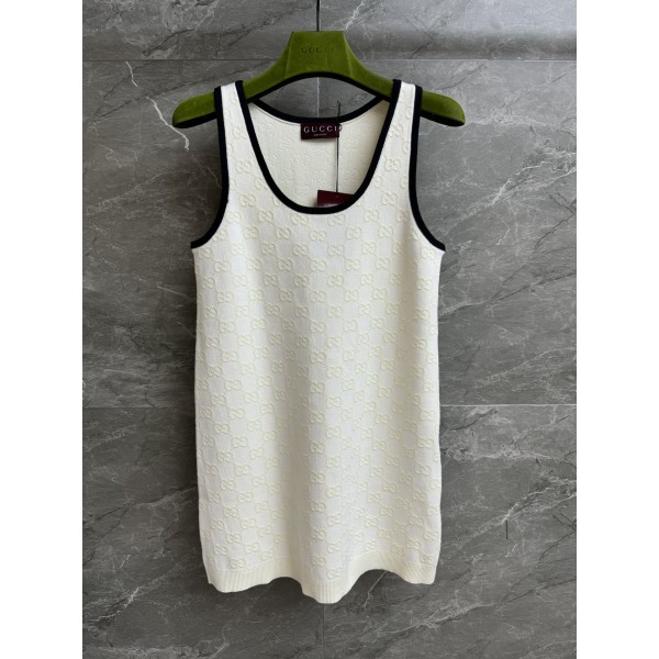 스타일: U넥 민소매 니트 원피스, 해군 블루 테두리 소재: 코튼 니트, GG 자카드 패턴 핏 & 특징: 정사이즈, 체형 구애 없는 슬림핏, 경쾌하고 세련된 무드 사이즈: S / M / L / XL ㅡ #의류