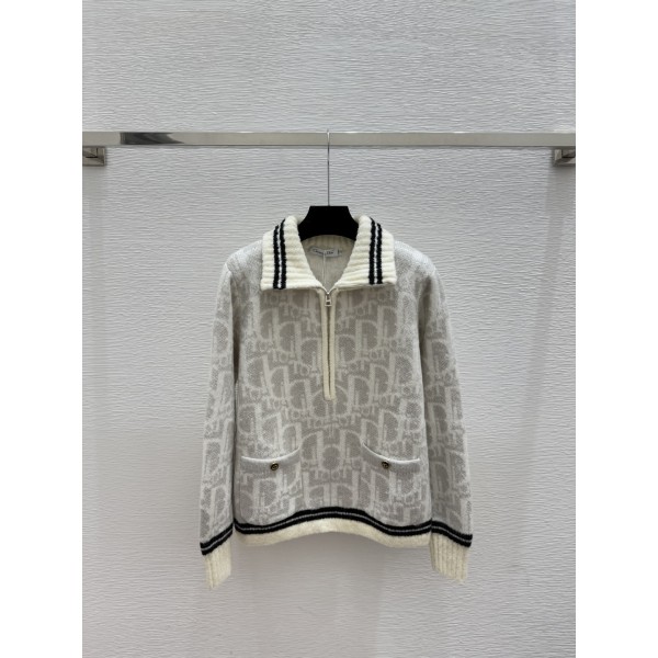 Dior CD 디올 배색 로고 카라 반 하프 집업 니트 긴팔 의류 > 여성 TEE& TOP