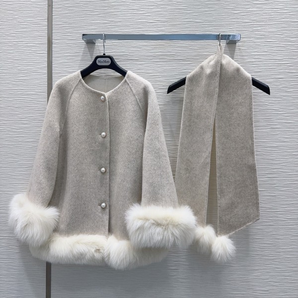 프리미엄 원단 원단(30% 캐시미어 + 70% 울) 여우털 소매 탈부착 가능 수제 핸드메이드 제작 고급스러운 도시 여성 스타일 사이즈 S/M/L (S: 가슴 106 / 총장 68 / 어깨·소매 66.5) ㅡ #의류