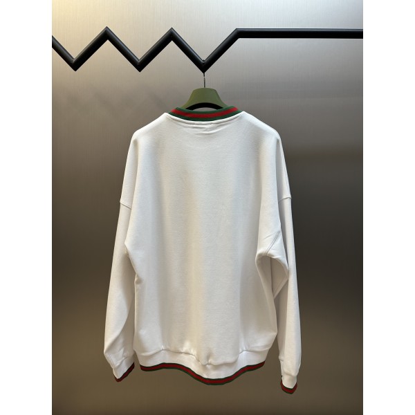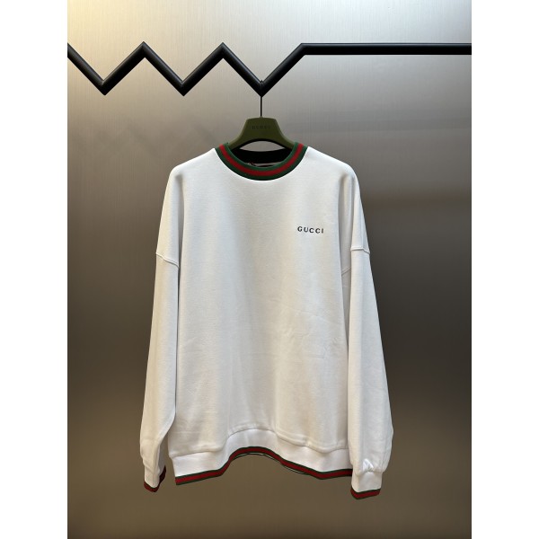 부드러운 코튼 혼방 소재, 화이트 베이스 가슴 GUCCI 자수 포인트 + 스트라이프 웨빙 트리밍 낙낙한 숄더핏으로 도시적 캐주얼 스타일 연출 정교한 컴퓨터 자수 + 교차 웨빙 디테일 사이즈: S / M / L / XL ㅡ #의류