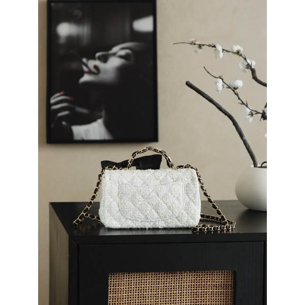 • Chanel 샤넬 25K 화이트 벨벳 핸들 CF 미니 숄더백 가방