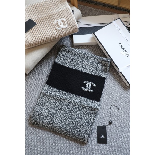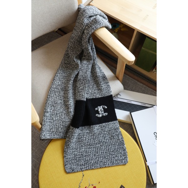 • CHANEL 샤넬 캐시미어 배색 니트 머플러 목도리 스카프