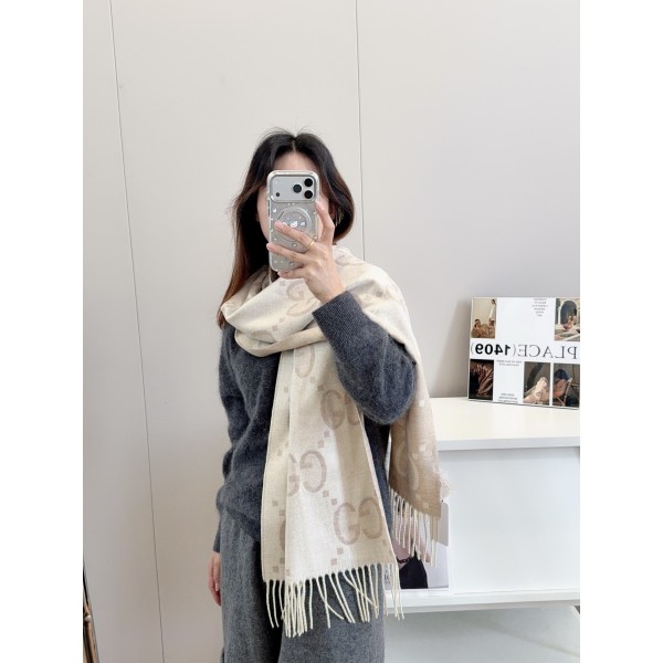 고급 울+실크 혼방 소재 클래식 GG 빅 로고 디자인 70년대 감성에서 재해석된 헤리티지 패턴 부드럽고 가벼운 착용감 사이즈: 47×180 ㅡ #머플러