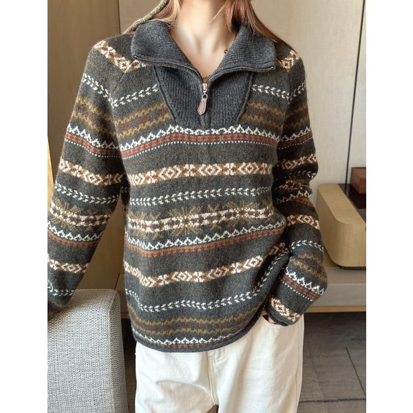 Loro Piana 로로 피아나 레트로 페어 아일 패턴 울 스웨터 니트 의류 > 여성 TEE& TOP